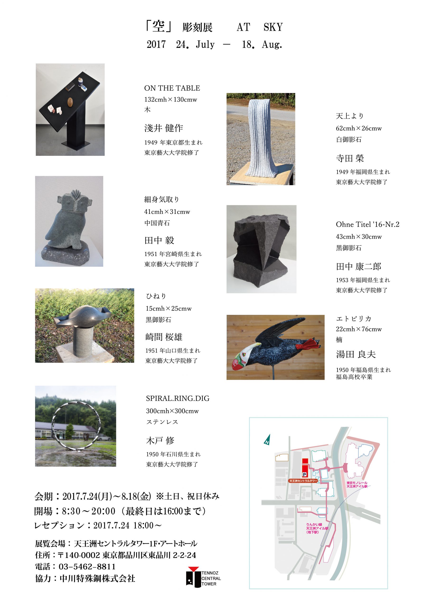 7月24日(月)より 天王洲アイル、中川特殊鋼株式会社内アートホールに於いて「空展」が開催されます。